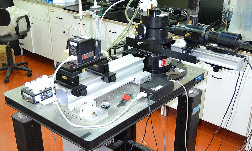 El DLS‐SLS SM200 permite medir el radio hidrodinámico de coloides, polímeros y diversas nanopartículas dispersas en soluciones acuosas y orgánicas. Posee dos configuraciones posibles: dispersión de luz dinámica (DLS) y estática (SLS). La celda de medida se halla montada sobre un goniómetro que permite medir entre 15° y 155° con control de temperatura (10°C ‐ 70°C). El rango de diámetro accesibles por esta técnica se encuentra entre 1 y 1000 nm.